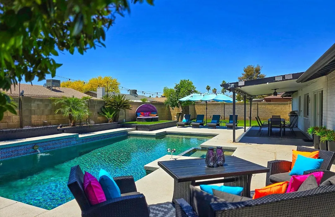 Die Villa bietet eine Essecke und einen Essbereich im Freien mit Ausstattung zur Kaffee- & Teezubereitung. Es gibt auch eine Mikrowelle, eine Kaffee-/Teemaschine und Küchenutensilien in der Küche. Diese Unterkunft liegt in fußläufiger Entfernung vom Restaurant Filibertos und bietet Gerichte der mexikanischen Küche. Diese Villa ist auch vom 20 km entfernten Flughafen Phoenix Sky Harbor International aus leicht erreichbar.
